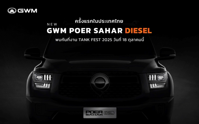 GWM (Thailand) กำลังจะสร้างความตื่นเต้นให้กับตลาดรถกระบะในประเทศไทย ด้วยการเปิดตัวครั้งแรกของ "NEW GWM POER SAHAR DIESEL" รถกระบะพรีเมียมทางเลือกใหม่ ที่มาพร้อมขุมพลังดีเซล 2.4T