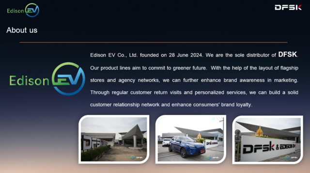SERES GROUP ผู้ผลิตรถยนต์ไฟฟ้าชั้นนำจากจีน ได้แต่งตั้ง บริษัท เอดิสัน อีวี จำกัด เป็นผู้จัดจำหน่ายรถยนต์ไฟฟ้าแบรนด์ DFSK แต่เพียงผู้เดียวในประเทศไทย Edison EV จัดงานแถลงข่าวเปิดตัวบริษัทอย่างเป็นทางการในวันที่ 22 ตุลาคม 2568 พร้อมประกาศแผนธุรกิจและนำเสนอผลิตภัณฑ์ในงานมอเตอร์ เอ็กซ์โป 2025