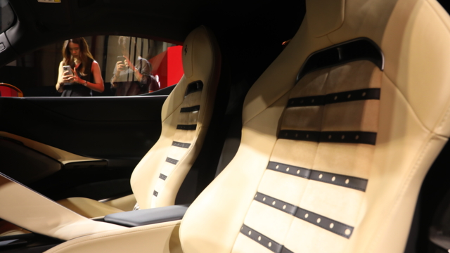 ภายใน เน้นการผสมผสานระหว่างสไตล์ Berlinetta และ Cockpit แบบ Single-Seater มีการออกแบบแผงหน้าปัดและช่องแอร์แบบ C-Shaped Air Vents และ Central Tunnel ที่ปรับปรุงใหม่ เบาะนั่ง มีตัวเลือกแบบ Comfort และ Carbon-Fibre Racing Seat พร้อม Carbon-Fibre Side Bolsters เพื่อความสปอร์ตสูงสุด