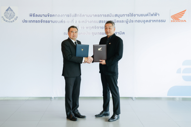 ไทยฮอนด้า ผู้ผลิตและจัดจำหน่ายรถจักรยานยนต์และเครื่องยนต์อเนกประสงค์ฮอนด้าในประเทศไทย ได้เข้าร่วม พิธีลงนามข้อตกลงการรับสิทธิตามมาตรการสนับสนุนการใช้ยานยนต์ไฟฟ้า ประเภทรถจักรยานยนต์ระยะที่ 2 หรือที่เรียกว่า มาตรการ EV 3.5 เมื่อวันที่ 19 พฤศจิกายน 2568 ณ กรุงเทพฯ