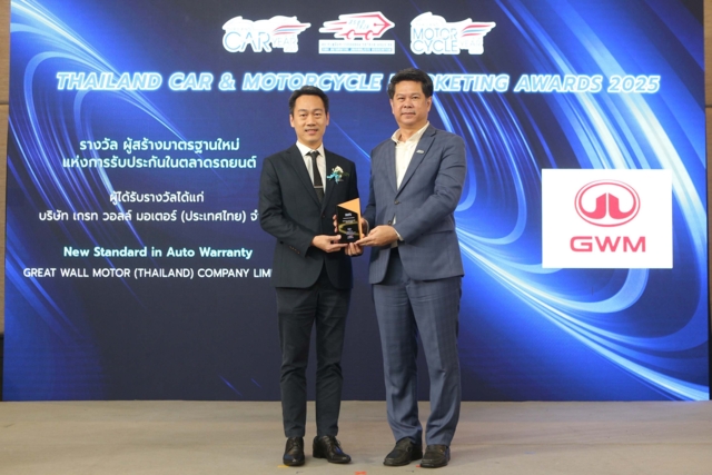 GWM (Thailand) ได้รับรางวัล "ผู้สร้างมาตรฐานใหม่แห่งการรับประกันในตลาดรถยนต์" จากสมาคมผู้สื่อข่าวรถยนต์และรถจักรยานยนต์ไทย (สรยท.) ซึ่งสะท้อนถึงความมุ่งมั่นในการยกระดับบริการหลังการขายและตอกย้ำความเชื่อมั่นในคุณภาพของเครื่องยนต์ดีเซล GWM TANK โดยมี คุณธีร์ธวัฒน์ โกศลานันทกุล ผู้อำนวยการฝ่ายบริการหลังการขาย เป็นผู้แทนรับรางวัล
