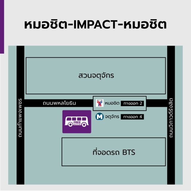 หมอชิต-IMPACT-หมอชิต BTS สถานีหมอชิต EXIT 2, MRT สถานีจตุจักร EXIT 4