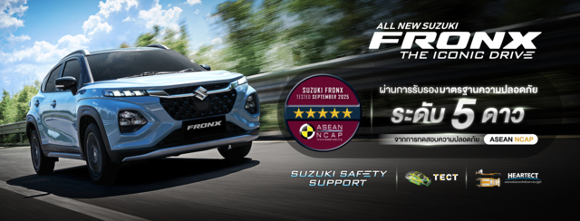 บริษัท ซูซูกิ มอเตอร์ (ประเทศไทย) จำกัด ประกาศว่า ALL NEW SUZUKI FRONX ได้รับการประเมินและได้รับรางวัล 5 ดาว ซึ่งเป็นมาตรฐานความปลอดภัยสูงสุดจากโครงการประเมินสมรรถนะความปลอดภัยของรถยนต์ใหม่ในภูมิภาคเอเชียตะวันออกเฉียงใต้ (ASEAN NCAP)