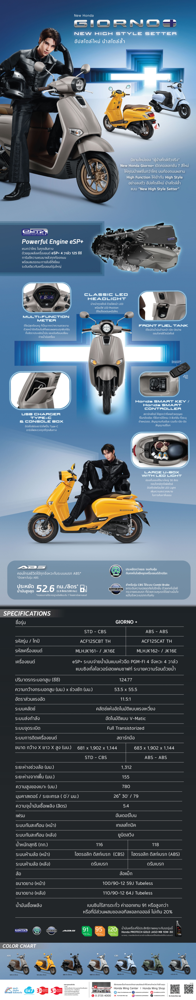 ไม่เพียงแค่ดีไซน์ที่สวยงาม แต่สมรรถนะยังอัดแน่นด้วยเทคโนโลยีเพื่อการใช้งานจริง ขับเคลื่อนด้วยเครื่องยนต์ eSP+ ขนาด 125 ซีซี 4 วาล์ว ระบายความร้อนด้วยน้ำ ให้การขับขี่ที่นุ่มนวลและคล่องตัว โดยมีอัตราประหยัดน้ำมันสูงสุดถึง 52.6 กม./ลิตร มั่นใจทุกเส้นทางด้วยโครงสร้างที่แข็งแรงและระบบเบรกที่มีให้เลือกทั้งแบบ ABS และ CBS