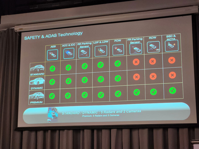ในรุ่น Standard และ Dynamic จะได้กล้อง 2 ตัวทำงานร่วมกับเรดาร์ 5 ตำแหน่ง ในขณะที่รุ่น Premium จะมากับกล้อง 5 ตัว เรดาร์ 9 ตำแหน่ง