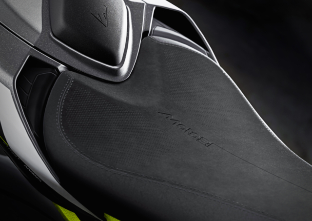 ตัวรถโดดเด่นด้วยโทนสี Mineral Grey & Crystal White ตัดด้วยสีเหลือง Triumph Performance Yellow ยกระดับความพรีเมียมด้วยชิ้นส่วน คาร์บอนไฟเบอร์ ทั้งแผงข้างและฝาครอบไฟหน้า พร้อมหมายเลขลำดับรถกำกับเฉพาะคันบนคานบนบิลเล็ต