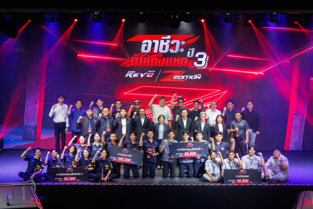 บริษัท โตโยต้า มอเตอร์ ประเทศไทย จำกัด ร่วมกับ สำนักงานคณะกรรมการการอาชีวศึกษา จัดงานประกาศผลรางวัลรอบชิงชนะเลิศกิจกรรม “อาชีวะ ท้าแต่งแซด กับ ไฮลักซ์ รีโว่ แซด อิดิชั่น ปี 3” ณ TOYOTA ALIVE บางนา กม.3 เมื่อวันที่ 11 มีนาคม 2569 ที่ผ่านมา กิจกรรมนี้จัดขึ้นต่อเนื่องเป็นปีที่ 3 เพื่อเปิดโอกาสให้นักเรียน นักศึกษา ได้นำความรู้ด้านยานยนต์มาประยุกต์ใช้ในการออกแบบและตกแต่งรถกระบะ Hilux Revo Z Edition ภายใต้โจทย์ “Z Generation” โดยมีเป้าหมายสำคัญในการส่งเสริมทักษะอาชีพและสนับสนุนการแต่งรถอย่างถูกกฎหมาย