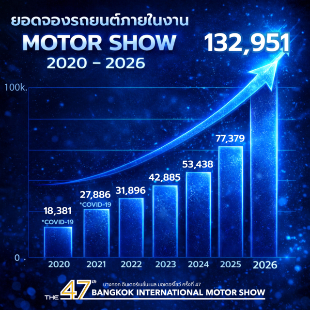 การจัดงานบางกอก อินเตอร์เนชั่นแนล มอเตอร์โชว์ ครั้งที่ 47 (Motor Show 2026) ภายใต้แนวคิดการเชื่อมโยงนวัตกรรมขับเคลื่อนที่ไร้ที่ติ ประสบความสำเร็จอย่างน่าทึ่งท่ามกลางสภาวะเศรษฐกิจที่ผันผวนและความไม่สงบด้านพลังงานในระดับโลก โดยงานในครั้งนี้ทำหน้าที่เป็นแรงขับเคลื่อนสำคัญที่ช่วยกระตุ้นกำลังซื้อของผู้บริโภคชาวไทยให้กลับมาคึกคักอีกครั้ง ด้วยเทคโนโลยีใหม่จากค่ายรถยนต์ชั้นนำทั่วโลกที่นำมาจัดแสดงอย่างเต็มรูปแบบ ส่งผลให้มียอดผู้เข้าชมงานรวมเกือบ 1.8 ล้านคน ซึ่งถือเป็นตัวเลขที่สะท้อนถึงความเชื่อมั่นของตลาดรถยนต์ไทยที่กำลังฟื้นตัวอย่างต่อเนื่องและแข็งแกร่ง