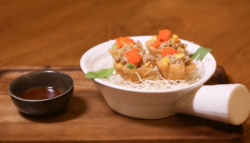 - กระทงทอง (ราคา 190 บาท) - กระทงทองไส้หมูผัดธัญพืชที่ถูกทอดมาจนเหลืองกรอบ ทานคู่กับน้ำจิ้มสูตรพิเศษฉบับ นว6