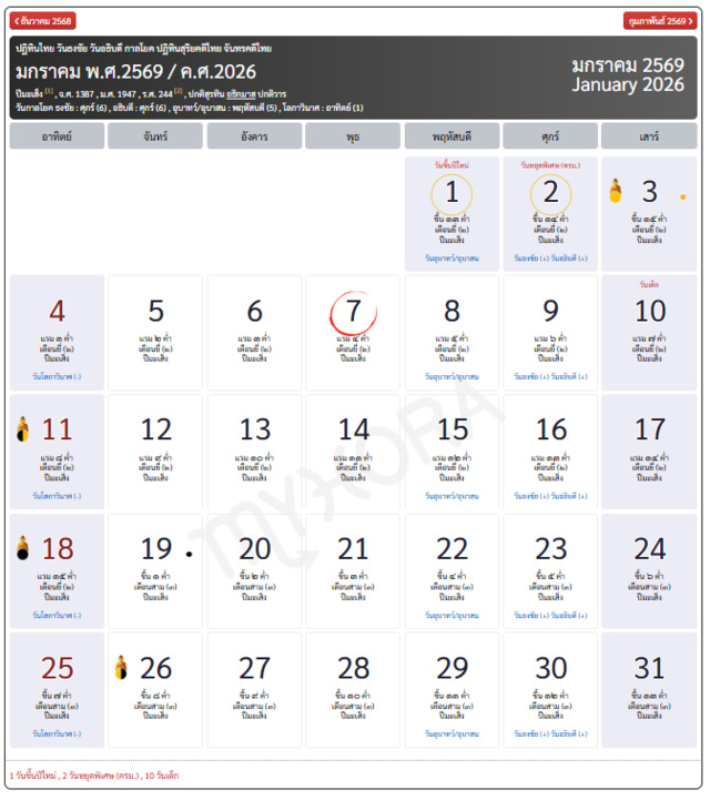 • วันพฤหัสบดีที่ 1 มกราคม 2569 เป็นวันอุบาทว์/อุบาสน