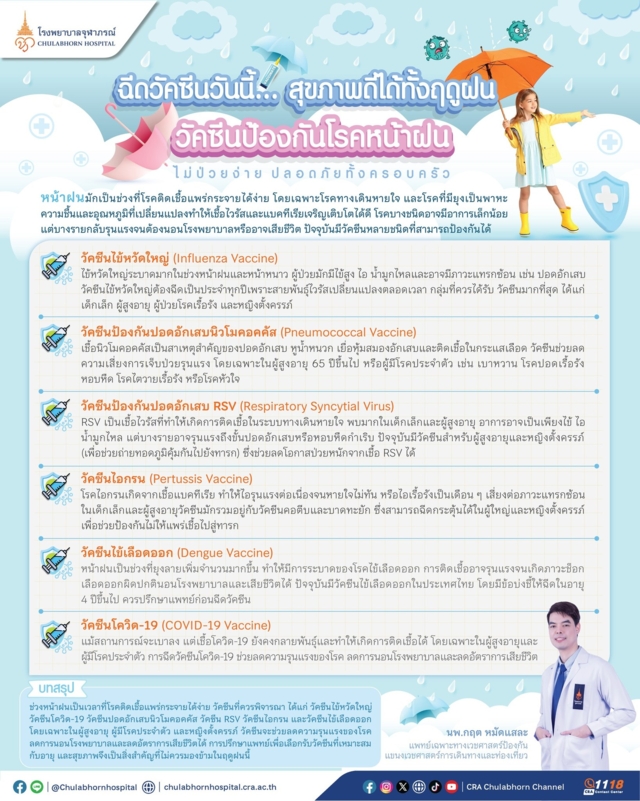 โรงพยาบาลจุฬาภรณ์ ราชวิทยาลัยจุฬาภรณ์ เชิญชวนปชช.เข้ารับ "วัคซีนทางเลือก" ปกป้องสุขภาพจากโรคอุบัติใหม่ เช็กรายละเอียด ค่าใช้จ่าย ข้อควรรู้ก่อนฉีด