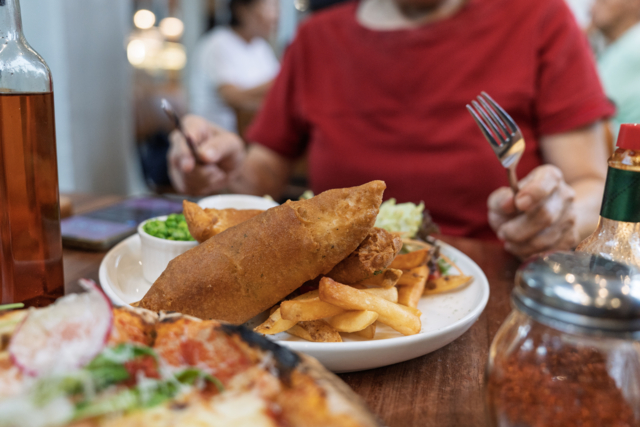 พวกแป้งเยอะ โดยเฉพาะข้าวขาว เส้น แป้งขัดสี จะทำให้น้ำตาลพุ่งสูง แล้วร่างกายจะเปลี่ยนน้ำตาลเป็นไขมันไตรกลีเซอไรด์ทันที ยิ่งกินเคียงกับน้ำจิ้มหวาน ๆ น้ำซุปเค็ม ๆ หรือเติมโซดา–น้ำหวานเข้าไปอีก ไตรกลีเซอไรด์ยิ่งทะลุเร็วมาก คนที่ตรวจเลือดแล้วค่าไตรกลีเซอไรด์สูง บางทีไม่ได้มาจากของมัน แต่มาจาก “ข้าวแป้งตอนเย็น” นี่แหละตัวดี!
