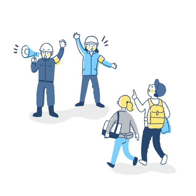 ช่องทางที่ใช้กระจายคำสั่งอพยพถูกออกแบบให้ซ้ำหลายชั้นเพื่อกันพลาด ตั้งแต่โทรศัพท์ ลำโพงสาธารณะ ทีวี วิทยุ ไปจนถึงการประกาศโดยเจ้าหน้าที่ที่เดินเคาะประตูบ้าน ในพื้นที่ที่มีชาวต่างชาติเยอะ รัฐบาลท้องถิ่นจะมีคำเตือนหลายภาษาเพื่อให้ทุกคนเข้าใจตรงกัน