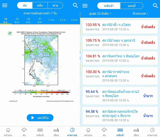 ศูนย์รวมข้อมูลสถานการณ์น้ำครบวงจร ครอบคลุมปริมาณฝนตก ระดับน้ำในลุ่มน้ำ ปริมาณน้ำในเขื่อน ข้อมูลพายุ คาดการณ์สภาพอากาศล่วงหน้า