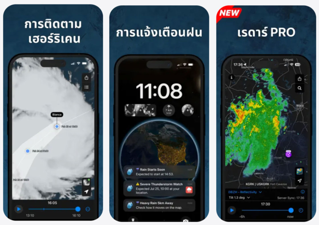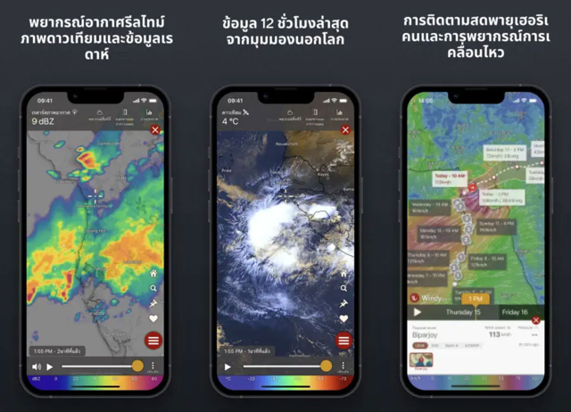 แอปพลิเคชันจากหน่วยงานภาครัฐไทย | แอปพลิเคชันติดตามสภาพอากาศและพายุระดับโลก |