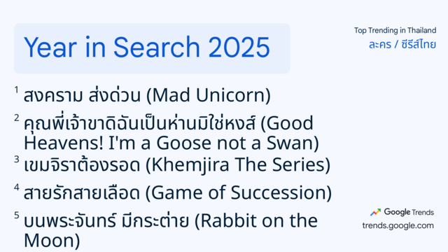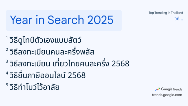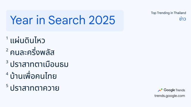 ปี 2568 ถือเป็นปีแห่งการเปลี่ยนแปลงครั้งใหญ่ในหลายมิติ ความสนใจของคนไทยก็สะท้อนภาพนี้อย่างชัดเจนผ่าน Google Year in Search 2025 ปีนี้คนไทยค้นหาอะไรมากที่สุด ?