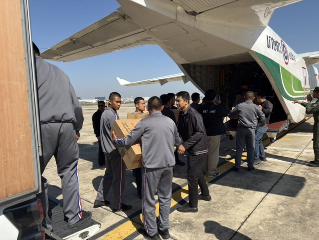 อธิบดีกรมการข้าว ได้ประสานงานนำสิ่งของทั้งหมด ขึ้นเครื่องบินของกรมฝนหลวงและการบินเกษตร บินลัดฟ้าลำเลียงจากกรุงเทพฯ มุ่งหน้าสู่หาดใหญ่ จังหวัดสงขลา เป็นกรณีเร่งด่วน