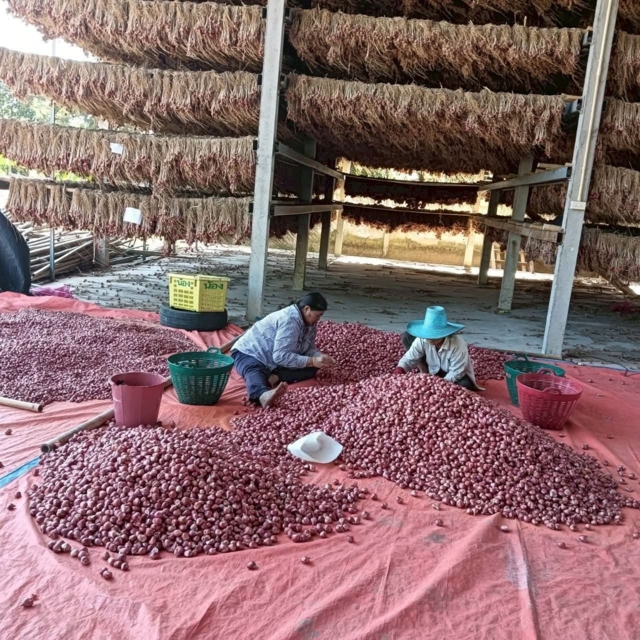 ด้านนางบานใจ มามาก สหกรณ์จังหวัดศรีสะเกษ กล่าวถึง สถานการณ์หอมแดง จ.ศรีสะเกษในฤดูกาลผลิตปีนี้ (2568/69) มีผลผลิตรวมประมาณ 145,424 ตัน ครอบคลุมพื้นที่ปลูกใน 7 อำเภอ รวมเนื้อที่ปลูก 34,478 ไร่ ให้ผลผลิตเฉลี่ย 4,218 กิโลกรัม/ไร่ โดยช่วงมกราคมถึงกุมภาพันธ์ผลผลิตหอมแดงออกมาพร้อมกันเป็นจำนวนมาก ขณะแหล่งรับซื้อที่มีอยู่ไม่สามารถรองรับผลผลิตทั้งหมดได้ส่งผลให้ราคารับซื้อหน้าสวนตกต่ำราคาเฉลี่ยอยู่ที่ 6-7 บาท/กิโลกรัมเท่านั้น ขณะต้นทุนการผลิตเฉลี่ยอยู่ที่ 10-11 บาท/กิโลกรัม