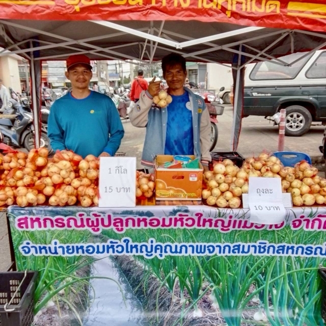ขณะที่ นางยุพิน อินทะญาติ ผู้อำนวยการกลุ่มส่งเสริมและพัฒนาธุรกิจสหกรณ์ สำนักงานสหกรณ์จังหวัดเชียงใหม่ กล่าวถึงการช่วยเหลือเกษตรกรสมาชิกสหกรณ์ผู้ปลูกหอมหัวใหญ่ของภาครัฐในช่วงที่ผ่านมา นอกจากกรมการค้าภายใน กระทรวงพาณิชย์ นำผู้ประกอบการกว่า 30 รายเข้ามารับซื้อผลผลิตในพื้นที่ในราคานำตลาดที่ 6 บาท/กิโลกรัม ในช่วงวันที่ 21 - 28 กุมภาพันธ์ 2569 ที่ผ่านมาแล้ว ทางสำนักงานสหกรณ์จังหวัดเชียงใหม่ร่วมกับจังหวัดเชียงใหม่ จัดพื้นที่จำหน่ายให้กับสหกรณ์ฯบ้านกาดพัฒนา จำกัด และสหกรณ์ฯแม่วาง จำกัด นำผลผลิตหอมหัวใหญ่ของสมาชิกมาจำหน่ายบริเวณศาลากลางจังหวัด โดยสลับกันมาสัปดาห์ละ 2 วันทุกวันอังคารและวันศุกร์ เพื่อช่วยระบายผลผลิตจากแหล่งผลิตสู่ผู้บริโภคได้บางส่วน