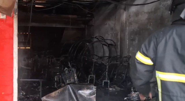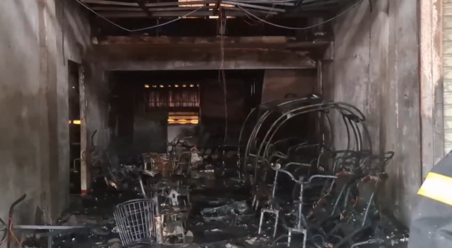 ที่เกิดเหตุเป็นลักษณะอาคารพาณิชย์สูง 4 ชั้น ปลูกติดกันหลายคูหาด้านบนเป็น "ห้องเช่า" โดยเจ้าหน้าที่พบต้นเพลิงเป็น ร้านขายมอเตอร์ไซค์ไฟฟ้า แต่ในขณะเกิดเหตุร้านดังกล่าวยังปิดอยู่ เจ้าหน้าที่มูลนิธิจึงได้ใช้ถังน้ำยาเคมีดับเพลิงฉีดระงับเพลิงไว้เบื้องต้น ก่อนที่เจ้าหน้าที่ดับเพลิงจะพังประตูหน้าร้านเข้าไประดมฉีดน้ำสกัดเพลิงที่ลุกไหม้อยู่ภายในร้าน ใช้เวลาประมาณ 15 นาที เพลิงจึงสงบ จากการตรวจสอบเบื้องต้นพบเพลิงได้ลุกไหม้ร้านขายมอเตอร์ไซค์ไฟฟ้าวอด 1 คูหา รถมอเตอร์ไซค์ไฟฟ้าเสียหายทั้งหมดเกือบ 20 คัน