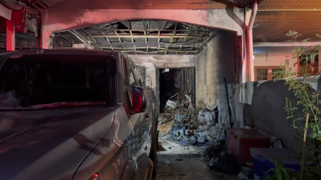 นางสุมิตรา (สงวนนามสกุล) อายุ 65 ปี เพื่อนบ้านฝั่งตรงข้ามกล่าวว่า ตื่นมา ตี 2 กว่าเห็นเพลิงกำลังไหม้ มีเสียงระเบิดเป็นระยะ เพลิงไหม้เร็วมากนานเป็นชั่วโมงได้เพลิงจึงสงบ