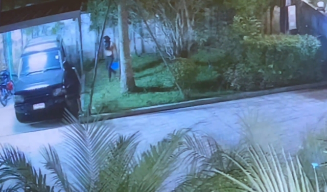 โดยกล้องวงจรปิดสามารถจับภาพไว้ได้ เห็นรูปพรรณได้อย่างชัดเจนคนแรกรูปร่างเตี้ย ใช้เสื้อสีดำคลุมหัว ปิดใบหน้า คนที่ 2 รูปร่างผอมสูงไม่สวมเสื้อ แต่เอาเสื้อคลุมหัวและปิดบังใบหน้าเช่นกัน สวมรองเท้าแตะคีบ