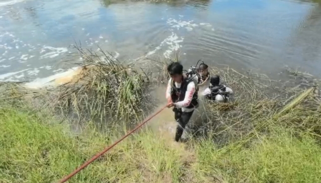 และล่าสุด เมื่อเริ่มค้นหากันอีกครั้ง ในช่วงเวลาประมาณ 10.00 น.วันนี้ ทีมมนุษย์กบ ฮุก 31 ได้ใช้โดรนบินสำรวจทางอากาศสภาพจุดเกิดเหตุก่อน ซึ่งพบว่าคลองสวาย กว้างกว่า 50 เมตร ลึกประมาณ 4 -6 เมตร และมีความยาวหลายกิโลเมตร เป็นคลองสาขาที่คดเคี้ยวลัดเลาะไปตามผืนนากว้าง รับน้ำส่วนหนึ่งมาจากลำเชียงไกรและลำบริบูรณ์ ก่อนที่มวลน้ำทั้งหมดจะไหลไปยังพื้นที่อำเภอโนนสูง และไปลงลำน้ำมูลที่อำเภอพิมายต่อไป แต่ฝายตานูน จุดเกิดเหตุ เป็นฝายน้ำล้นสร้างขวางคลองสวายเอาไว้ เพื่อใช้ชะลอน้ำช่วงหน้าฝนและกักเก็บน้ำช่วงหน้าแล้ง ปัจจุบันพบว่า ระดับน้ำในคลองเพิ่มสูงต่อเนื่อง กระแสน้ำไหลเชี่ยว มวลน้ำสูงจนล้นฝาย ก่อนจะไหลแยกไปตามแนวคลองทั้งด้านซ้ายและขวา ลักษณะเป็นทางแยกสามแพร่ง จึงคาดว่า ร่างผู้สูญหายอาจจะถูกกระแสน้ำพัดลอยออกไปไม่ไกล