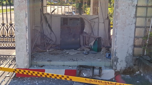 ผู้สื่อข่าวรายงานว่า เมื่อเวลา 00.53 น. วันที่ 7 ต.ค. 68 พ.ต.อ.วฤทธิ์ เจ๊ะโด ผกก.สภ.บ้านโสร่ง อ.ยะรัง จ.ปัตตานี ได้รับแจ้งเหตุคนร้ายลอบวางระเบิดตู้เอทีเอ็ม ธนาคารอิสลามแห่งประเทศไทย บริเวณหน้ามหาวิทยาลัยฟาฏอนี ต.เขาตูม อ.ยะรัง จึงประสานกำลังเจ้าหน้าที่ตำรวจ ทหาร และชุดเก็บกู้วัตถุระเบิดเข้าตรวจสอบทันที โดยที่เกิดเหตุพบตู้เอทีเอ็มได้รับความเสียหายจากแรงระเบิด เศษชิ้นส่วนระเบิด และชิ้นส่วนตู้เอทีเอ็มกระจายทั่วพื้นที่ เจ้าหน้าที่ต้องกั้นบริเวณเพื่อความปลอดภัย และจะเข้าตรวจสอบอย่างละเอียดอีกครั้งในช่วงเช้า
