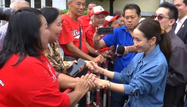 ขณะที่มวลชนคนเสื้อแดง กล่าวให้กำลังใจ ว่า เราเป็นกำลังใจให้ เรามาจากจังหวัดศรีสะเกษ เราจะต่อสู้เลือกตั้งรอนาย ขอให้นายมีกำลังใจสู้นะคะท่านนายกฯ (พร้อมส่งยิ้ม และมองไปที่ใบหน้าของนายณัฐพงศ์ คุณากรวงศ์) ซึ่งทั้ง น.ส.พินทองทา และนายณัฐพงศ์ ต่างยกมือไหว้ขอบคุณ และร่วมบันทึกภาพกับทุกคน โดยเฉพาะนายปิฎก ที่กลายเป็นขวัญใจคนใหม่ของคนเสื้อแดง ต่างร่วมบันทึกภาพด้วยบรรยากาศชื่นมื่น
