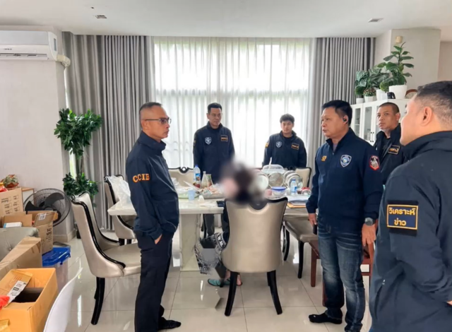 พ.ต.อ.คุณาปะโยขน์ กล่าวว่า จากการสอบสวนเจ้าหน้าที่ตำรวจได้รวบรวมพยานหลักฐาน จนพนักงานสอบสวนสามารถขอหมายค้นศาลจังหวัดฉะเชิงเทรา 295/2568 ลงวันที่ 6 ต.ค. 2568 ตรวจค้นและจับกุมผู้ต้องหาตามหมายจับ ที่บ้านพักอาศัยย่าน ถ.ราชพฤกษ์ แขวงบางจาก เขตภาษีเจริญ กรุงเทพ พร้อมทั้งตรวจค้นในพื้นที่ กทม., สมุทรปราการ, ราชบุรี, นครปฐม, ฉะเชิงเทรา, เชียงใหม่ และชลบุรี เป้าหมายจับ จำนวน 11 หมาย จับกุมผู้ต้องหาได้ 9 ราย