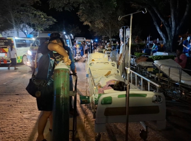 ต่อมาโรงพยาบาลได้ประกาศสถานการณ์ฉุกเฉิน โดยได้ขอความร่วมมือไปยังสมาคมกู้ชีพ-กู้ภัยวังโป่งรวมใจสมาคมกู้ชีพ-กู้ภัยชนแดนสงเคราะห์กว่า 50 คน เพื่อทำการเคลื่อนย้ายผู้ป่วยทั้งหมด รวมทั้งอุปกรณ์การแพทย์ออกจากอาคาร