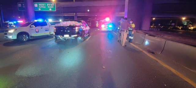 เมื่อเวลา 02.00 น. วันที่ 24 ต.ค. 68 พ.ต.ต.พรเจตต์ พร้อมมูล สารวัตรสอบสวน สภ.ประตูน้ำจุฬาลงกรณ์ ได้รับแจ้งมีอุบัติเหตุรถจักรยานยนต์ไม่ทราบว่ารถอะไรเฉี่ยวชน ทำให้มีผู้เสียชีวิต 2 ราย บริเวณถนนพหลโยธินขาออก ช่องทางด่วนตรงข้ามห้างสรรพสินค้าเมเจอร์รังสิต ต.ประชาธิปัตย์ อ.ธัญบุรี จ.ปทุมธานี จึงไปที่เกิดเหตุ พร้อมด้วยแพทย์เวร โรงพยาบาลประชาธิปัตย์ และเจ้าหน้าที่มูลนิธิปอเต็กตึ้ง
