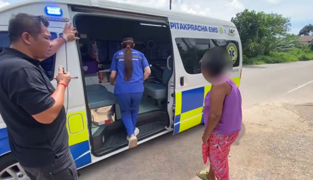 ต่อมาตำรวจ สภ.เมืองกระบี่ พร้อมกู้ภัยมูลนิธิกระบี่พิทักษ์ประชา กำนัน ผู้ใหญ่บ้านในพื้นที่รับแจ้งเหตุจึงเดินทางมาตรวจสอบทราบชื่อคนเจ็บคือ น.ส.นนท์ตระการ หรืออ้อย อายุ 57 ปี บ้านอยู่ตรงข้ามกับร้านขายของชำ บาดเจ็บบริเวณแขน 2 ข้าง มีอาการบวมช้ำ เนื่องจากใช้แขนรับมีดพร้า เจ้าหน้าที่จึงพาตัวส่ง รพ.กระบี่ และพาเข้าแจ้งความที่ สภ.เมืองกระบี่