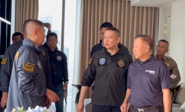 และเมื่อเวลา 10.00 น. พล.ต.ต.ศรายุทธ จุณณวัตต์ ผบก.สอท.2 พ.ต.อ.คุณาปะโยชน์ อารียรัตนะณธร ผกก.วิเคราะห์ข่าวฯ บก.สอท.2 นำกำลัง พร้อมหมายค้นศาลอาญา เข้าตรวจค้นเป้าหมายบ้านพักของนายพัดสุภาภาหรือลียงพัดมหาเศรษฐีกัมพูชาเจ้าพ่อสแกมเมอร์ที่ปรึกฮุนเซน