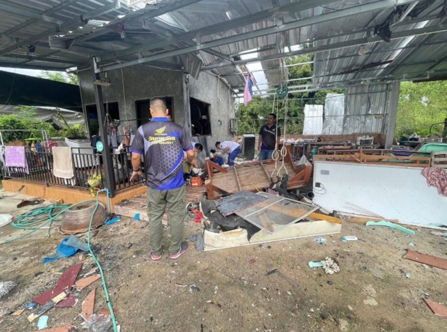 จากการตรวจสอบเบื้องต้นพบว่าแรงระเบิดส่งผลให้บ้านได้รับความเสียหายอย่างหนัก ทั้งกระจกแตกหลังคาโรงรถและตัวบ้านพังถล่ม ประตูมุ้งลวด แผ่นกระเบื้อง รวมถึงโต๊ะไม้กระเด็นตกกระจายทั่วพื้นที่ สร้างความตกใจให้กับเพื่อนบ้านโดยรอบ