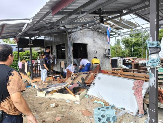 เมื่อเจ้าหน้าที่ถึงที่เกิดเหตุพบชาย อายุประมาณ 60 ปี ได้รับบาดเจ็บจากแรงระเบิดภายในบ้าน เจ้าหน้าที่จึงเร่งนำตัวส่งโรงพยาบาลเป็นการด่วน