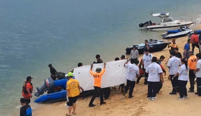 ทางสำนักงานป้องกันและบรรเทาสาธารณภัยจังหวัดพังงา ร่วมกับปภ.เขต15 ภูเก็ตกู้ภัยกุศลธรรมภูเก็ต และหน่วยกู้ภัยในพื้นที่ส่งเจ้าหน้าที่ประดาน้ำลงค้นหาจนเวลาประมาณ 08.00 น.ได้พบรถกระบะโตโยต้าวีโก 4 ประตูสีดำป้ายทะเบียนกพ 2015 สุราษฎร์ธานีจมอยู่ในจุดเกิดเหตุช่วงกลางสะพานระหว่างจังหวัดพังงา-ภูเก็ต และพบผู้เสียชีวิต 1 ราย ทราบชื่อภายหลังชื่อนายตรีพัฒน์ รัตนพงศ์ อายุ 49 ปีชาว อ.บ้านนาเดิม จ.สุราษฎร์ธานี ศพอยู่ที่นั่งคนขับรัดเซฟตี้เบล ในอกอุ้มรูปเจ้าแม่กวนไม้แกะสลัก 1 องค์ เบื้องต้นยังไม่สามารถนำศพขึ้นมาได้เนื่องจากกระแสน้ำแรง