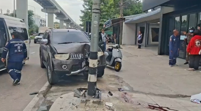ที่เกิดเหตุบนทางเท้าพบร่างนายวิชัย สุขสันติ อายุ 60 ปี เสียชีวิตในสภาพถูกชนอย่างรุนแรง ห่างออกไปไม่กี่เมตร พบรถยนต์มิตซูบิชิปาเจโร่สีดำ พุ่งอัดติดเสาไฟส่องสว่าง ด้านหน้าพังยับ คนขับเป็นชายอายุ 60 ปี ได้รับบาดเจ็บเล็กน้อย เจ้าหน้าที่นำตัวส่งสภ.สำโรงเหนือเพื่อสอบสวนเพิ่มเติม พร้อมทั้งนำไปตรวจวัดแอลกอฮอล์ที่โรงพยาบาล