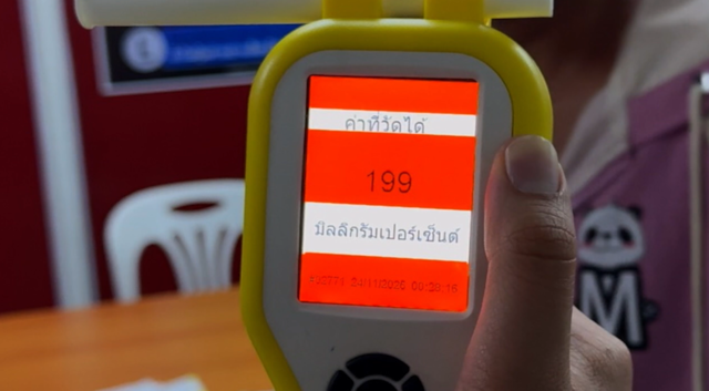 จากนั้นตำรวจได้ควบคุมตัวคนขับรถกระบะมาสอบสวน ทราบชื่อต่อมาคือ นายคึกฤทธิ์ (สงวนนามสกุล) อายุ 41 ปี ชาว จ.นครพนม และทำการวัดปริมาณแอลกอฮอล์ โดย นายคึกฤทธิ์ พยายามเป่าหลายครั้ง ปริมาณแอลกอฮอล์ในเครื่องวัดถึงจะวัดได้ โดยวัดได้ 199 มิลลิกรัมเปอร์เซ็นต์ โดยนายคึกฤทธิ์ให้การว่าได้ดื่มสุราที่บ้านเช่าที่บ้านโคกฟันโปง ต.บ้านเป็ด อ.เมืองขอนแก่น จำนวน 2 แบน จากนั้นได้ออกมาทำธุระกับเพื่อนและกำลังจะขับรถเพื่อกลับบ้านพัก แต่ประสบอุบัติเหตุเสียก่อน