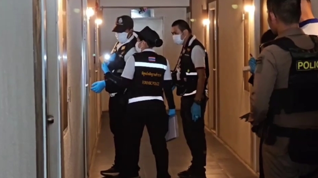 ส่วนทางด้าน เจ้าหน้าที่ตำรวจพิสูจน์หลักฐานเขต 2 แพทย์เวรโรงพยาบาลวัดญาณสังวราราม พร้อมด้วยเจ้าหน้าที่ตำรวจชุดสืบสวนจังหวัดชลบุรี สืบสวนภาค 2 ตม.จ.ชลบุรี ตำรวจท่องเที่ยวพัทยา ชุดสืบสวน สภ.นาจอมเทียน เข้าเก็บหลักฐานต่างๆภายในห้องพัก อาทิ คราบรอยนิ้วมือแฝงต่างๆในห้องพัก คราบรอยนิ้วมือแฝงที่ถุงดำ กุญแจมือ โดยใช้เวลาประมาณ 1 ชม. ก่อนนำร่างผู้เสียชีวิตนำส่งสถาบันนิติเวช โรงพยาบาลตำรวจ เพื่อชันสูตรหาสาเหตุที่แท้จริง เพื่อดำเนินการตามขั้นตอนของกฎหมาย