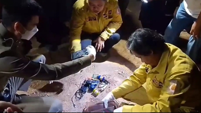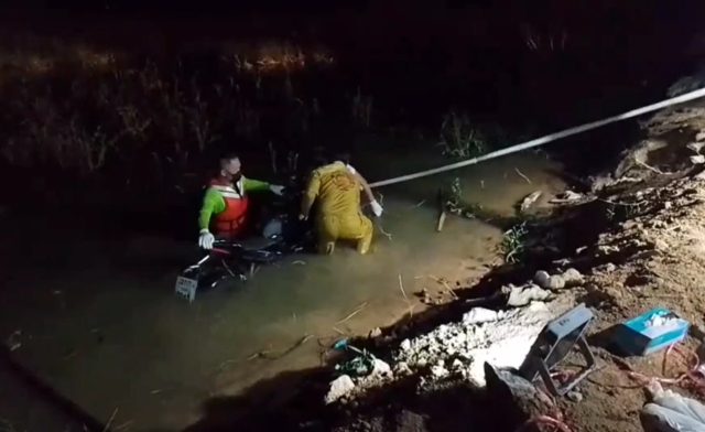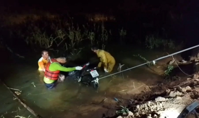 เมื่อไปถึงพบร่างชายผู้เสียชีวิตสวมเสื้อยืดกางเกงขาสั้นจมน้ำลอยคว่ำหน้าอยู่กับรถจักรยานยนต์ CBR150R สีดำ ที่ขาขวามีเชือกยึดรัดของผูกติดกับขาพักรถจักรยานยนต์