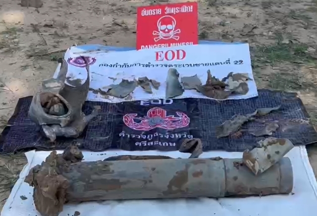 พ.ต.ท.จารุบุตร เรืองศรี รองผกก.ตชด.22 กล่าวว่า วันนี้ได้เข้าตรวจสอบพื้นที่กระสุนตกจำนวน 3 จุดในพื้นที่ใกล้เคียงกันมีการเก็บทำลายกระสุนปืนปรส.82 เป็นกระสุนปืนนำวิถีชนิดสามารถทำลายรถถังทำลายบังเกอร์ได้ช่วงนี้ประชาชนเริ่มกลับเข้าพื้นที่แล้ว เพื่อใช้ชีวิตอย่างปกติแล้ว จึงขอฝากแจ้งเตือนที่พบวัตถุต้องสงสัยว่าจะเป็นลูกจรวดหรือกระสุนปืน ให้แจ้งเจ้าหน้าที่หรือกำนัน-ผู้ใหญ่บ้าน ผู้นำท้องถิ่น ไปตรวจสอบแล้วแจ้งไปยังชุด EOD เข้ามาเก็บกู้ทำลายเพื่อความปลอดภัยของประชาชน