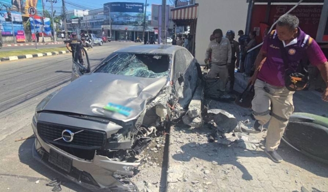 เมื่อถึงที่เกิดเหตุพบรถยนต์วอลโว่สีบรอนซ์เทา ป้ายประมูลทะเบียน ขค-4488 ภูเก็ต สภาพรถได้รับความเสียหายทั้งคัน ล้อหลังหลุดกระเด็น กระจกหน้าแตก กระจกด้านหลังแตก และท่อไอเสียหลุดออกมา เจ้าหน้าที่ได้สอบถามในเบื้องต้น ก่อนลำดับเรียบเรียงเหตุการณ์