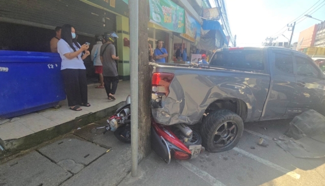 เมื่อมาถึงบริเวณสามแยกดังกล่าวรถวอลโว่ได้พุ่งชนรถจักรยานยนต์จำนวน 2 คัน ก่อนพุ่งชนคนเดินเท้า ซึ่งเป็นนักท่องเที่ยวชาวต่างชาติที่กำลังเดินอยู่ริมถนน 2 คน และร่างได้กระเด็นไป 1 คนได้รับบาดเจ็บอาการสาหัส ก่อนชนเสาไฟฟ้าส่องสว่างจนล้ม จากนั้นชนป้ายหาเสียงของผู้สมัคร สส. จนได้รับความเสียหาย ทำให้รถไม่สามารถขับต่อไปได้
