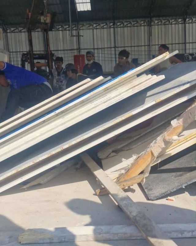 เพจ มูลนิธิร่วมกตัญญู เผยแพร่ภาพและเหตุการณ์ ระบุข้อความว่า #เตือนภัยอุบัติเหตุจากการทำงาน ที่ ซอยร่มเกล้า 25/8 มีกองแผ่นหินอ่อนทับคนหมดสติ มูลนิธิร่วมกตัญญู เร่งส่งทีมนำอุปกรณ์กู้ภัยไปช่วยเหลือ นำร่างออกมาได้รับส่งต่อให้ทีมกู้ขีพช่วยเหลือ และล่าสุด กู้ชีพเอราวัณยืนยันเสียชัวิต
