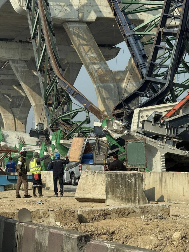 โดยเครนได้ถล่มลงมาบริเวณเกาะกลางถนน จุดเกิดเหตุอยู่บริเวณ ก่อนขึ้นสะพานท่าจีน ซึ่งเป็นพื้นที่ก่อสร้างโครงสร้างทางยกระดับ เบื้องต้นมีรายงานว่ามีผู้เสียชีวิตแล้ว 2 ราย