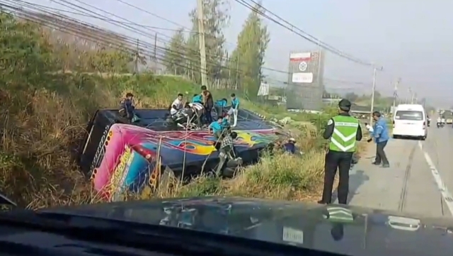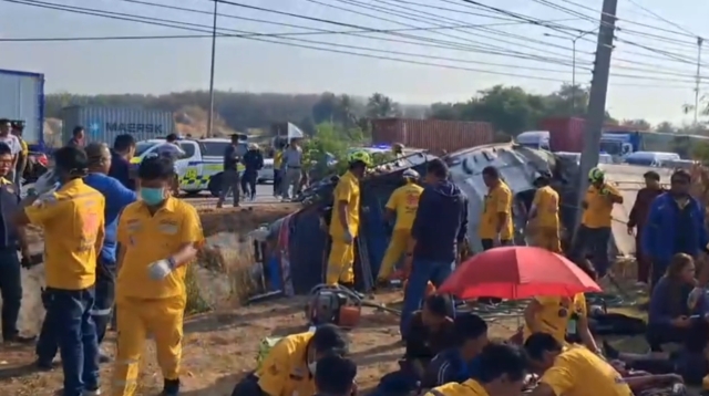 เมื่อเวลา วันที่ 15 มกราคม 2569 เวลา 09:00 น.เจ้าหน้าที่ตำรวจ สภ.หนองขาม กู้ภัยเพียวเยี้ยงไท้ศรีราชา ได้รับแจ้งมีอุบัติเหตุรถบัสพลิกคว่ำ มีคนเจ็บหลายราย ถนน 331 มุ่งหน้าแหลมฉบัง ตำบลหนองขาม อำเภอศรีราชา จังหวัดชลบุรี จึงรุดไปตรวจสอบที่เกิดกเหตุ