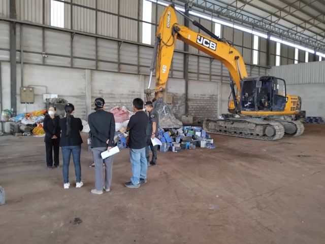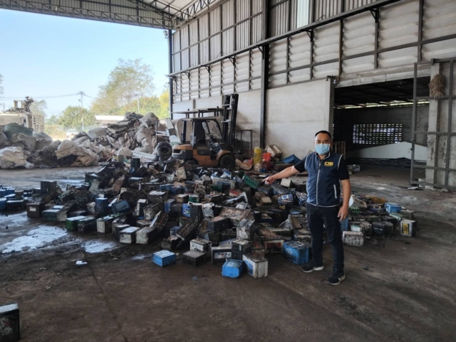 โดยภายในโรงงานพบของกลางจำนวนมาก ได้แก่ กองแบตเตอรี่เก่าใช้แล้ว (วัตถุอันตรายชนิดที่ 3) น้ำหนักรวมกว่า 54,643 กิโลกรัม (เกือบ 55 ตัน)