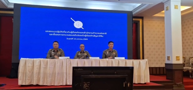 วันที่ 16 ม.ค.2569 ที่สำนักงานตำรวจแห่งชาติ พล.ต.ท.ไตรรงค์ ผิวพรรณ รองจเรตำรวจแห่งชาติ ในฐานะรองโฆษกสำนักงานตำรวจแห่งชาติ พร้อมด้วย พล.ต.ต.พัลลภ แอร่มหล้า รอง ผบช.น และ พ.ต.อ.ปริญญา กลิ่นเกษร รอง ผบก.ตม. 3 แถลงแนวปฏิบัติเกี่ยวกับผู้ต้องกักของสำนักงานตำรวจแห่งชาติ ตามนโยบายของ พล.ต.อ.กิตติ์รัฐ พันธุ์เพ็ชร์ ผบ.ตร. และชี้แจงการตรวจสอบคดีปล่อยตัวผู้ต้องกักสัญชาติจีน