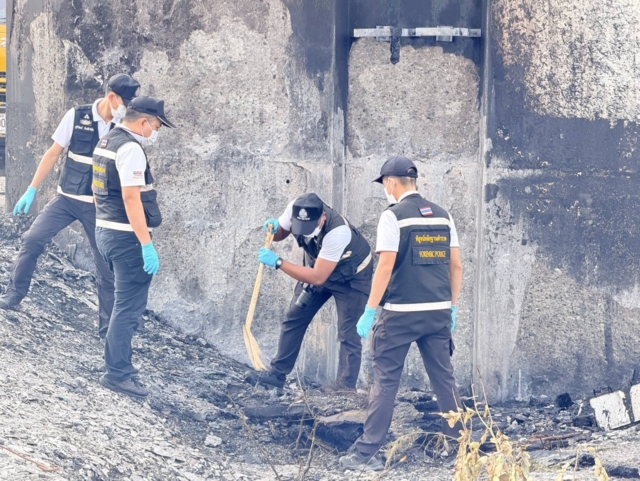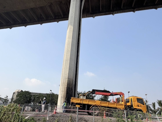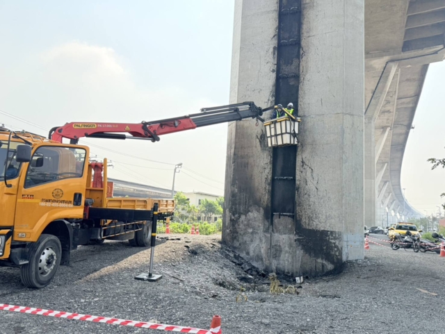 ด้านว่าที่ร้อยตรี ถิรวัจน์ กล่าวว่า พบว่ามีเพลิงไหม้บริเวณโคนเสาตอม่อ ลักษณะการลุกลามของไฟได้ลุกลามตาม ท่อระบายน้ำ (ท่อ HDPE) ซึ่งเป็นท่อยางที่รับน้ำระบายจากบนสะพานลงสู่ด้านล่าง โดยไฟลามจากด้านล่างขึ้นสู่ด้านบนอย่างต่อเนื่อง